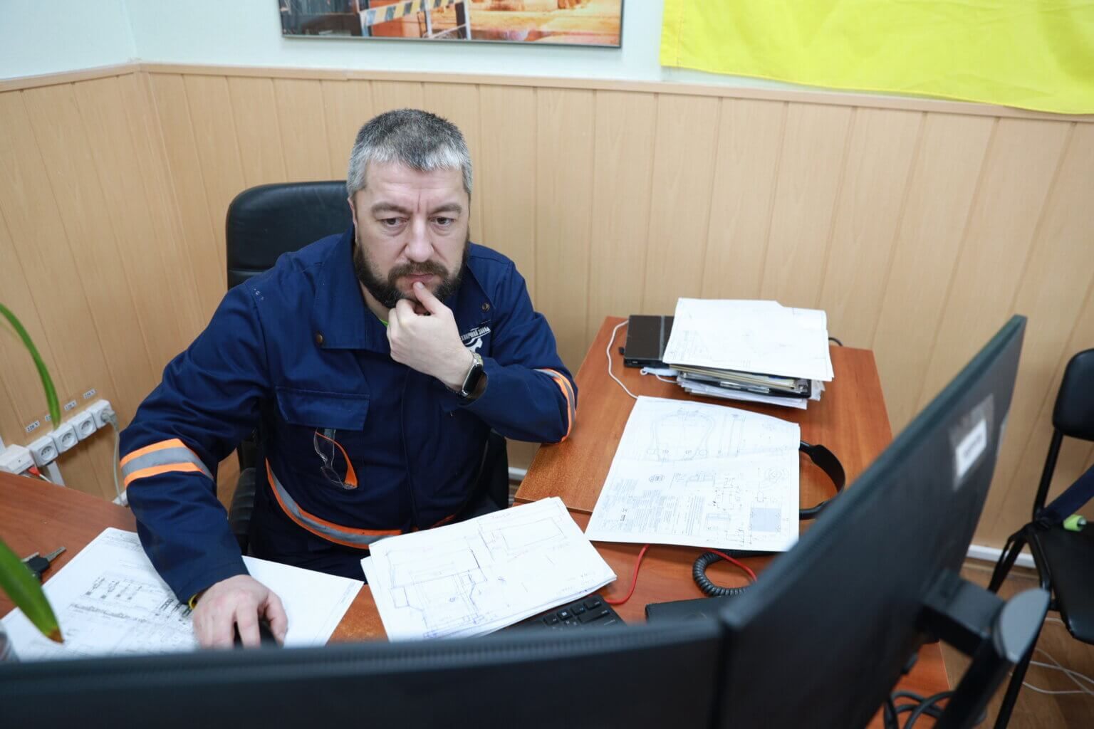 Наразі не залишилося цехів на мапі заводу, де не ступала нога Євгена Калабіна. Коли інженери-конструктори проєктують металоконструкції, механізми, деталі, то вони їдуть у цехи й вивчають предмет на місці, спілкуються з цеховиками. Євген розробляв проєкти для всіх виробничих департаментів. Єдине, де йому поки що не довелося побувати – це в шахті, тобто спуститися під землю, хоча креслення для шахтоуправління він робив не раз.