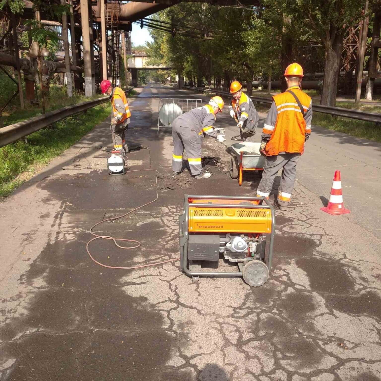 В «АрселорМіттал Кривий Ріг» тривають ремонти автошляхів. Роботи здійснюються власними силами з використанням холодного асфальту та будівельного бетону.