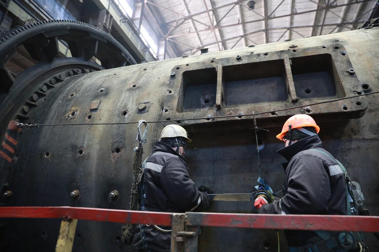 Перед збагаченням залізної руди на рудозбагачувальних фабриках, її подрібнюють у кульових млинах. Як розповів начальник РЗФ-2 Сергій Гіль, на фабриці одночасно задіяно 20 млинів. Це гігантські сталеві циліндри діаметром 4,5 метри та довжиною деякі 5 м, а інші навіть 6 м. У кожен з них завантажується 120-140 тонн сталевих куль діаметром до 120 мм кожна. Млин крутиться, кулі подрібнюють руду. А щоб стінки млина не розбилися зсередини, їх футерують захисними бронями, які прикріплюють за допомогою болтових з’єднань. Броні також зношуються, тому потребують заміни. Міняють броні підрядники з «Криворізького гірничо-металургійного консорціуму (КГМК)».