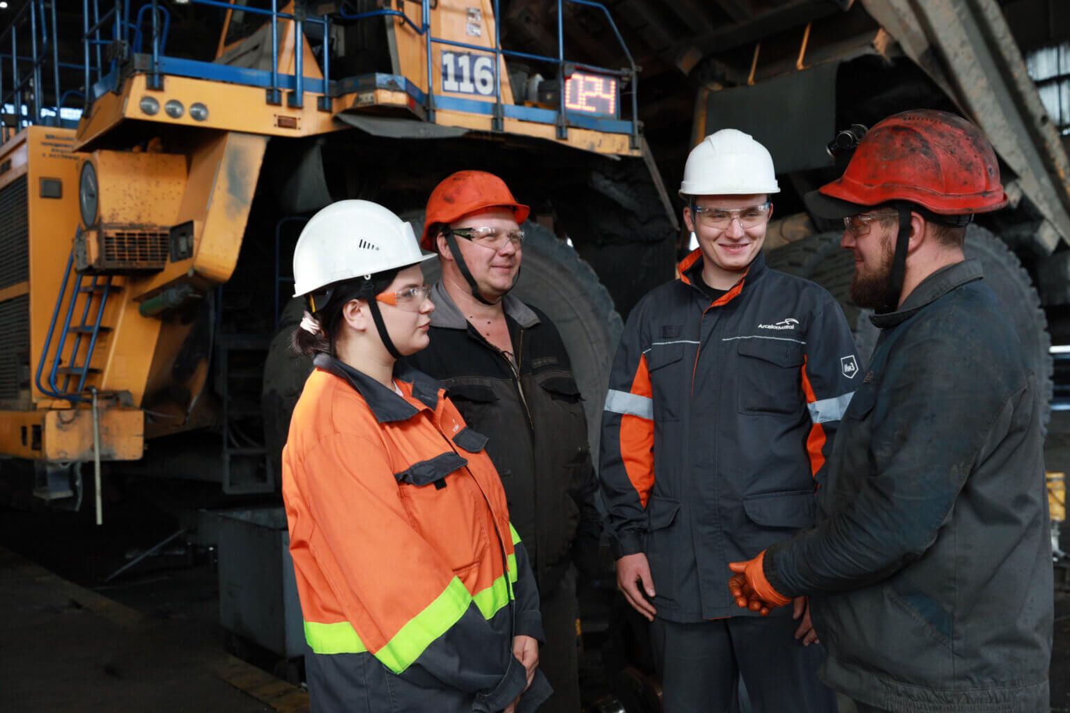 Ми прямуємо на виробничий майданчик, де ремонтують величезний самоскид. Володимир та Владислав – працівники підрядної організації, яка виконує цей ремонт. Практично щозміни вони працюють на висоті, з вантажопідйомними механізмами, електроінструментами, тобто небезпек вистачає. Мої супутники – провідний інженер з охорони праці Олександр Шишка та фахівчиня-стажерка Валерія Балабанова підходять до ремонтників, вітаються, розпитують про можливі проблеми з безпекою праці. Зав’язується щира розмова…