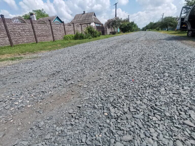 Роботи почалися у 2023 році. Загуркотіла важка гірнича техніка – бульдозери, грейдери тощо. Почалося будівництво дороги зі щебню. Не асфальт, звичайно, але ж і не ґрунтовка – рівна дорога без бруду та вибоїн. Вантажівки повезли щебінь. За словами менеджера з відкритого видобутку ГД Володимира Мороза, на будівництво дороги довжиною 750 метрів було завезено близько 800 тонн цього будівельного матеріалу.